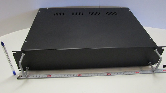 Stevige dikke plaatstalen behuizing inclusief metalen handvaten en afneembare kunststof poten.
