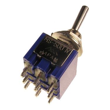 Tuimelschakelaar Miniatuur Schroefdraad Ø: 6mm Hevellengte: 11mm Functie: 3 x Om Piekbelasting: Belasting: 6A ; 3A Spanning: 125V ; 250V Aansluiting: soldeer
