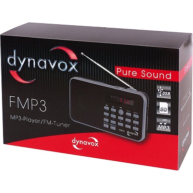De Dynavox FMP3 is een kleine FM radio met USB en SD ingang voor MP3 muziek. De ingebouwde Tuner heeft een goede FM ontvangst met een digitale frequentie uitlezing. De Dynavox FMP3 heeft een ingebouwde Li-ion accu. De accu kan geladen worden via de USB. De Dynavox FMP3 heeft een AUX ingang via een 3,5 mm jack.