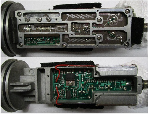 Inkomende signaal wordt met 3 fet’s versterkt en daarna uitgesplitst naar twee bandfilters. Achter deze bandfilters zijn aparte mixers geplaatst. De DRO oscillatoren zitten in de zijkant naast/boven de mixers. Deze zijn instelbaar met een schroefje aan de zijkant. De oscillatoren worden, afhankelijk van de gekozen band, via het rode draadje van 5volt voedingspanning voorzien.