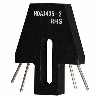 The HOA1405 series consists of an infrared emitting diode and an NPN silicon phototransistor encased side-by-side on converging optical axes in a black thermoplastic housing. The phototransistor responds to radiation from the IRED only when a reflective object passes within its field of view. The HOA1405 series employs an IR transmissive filter to minimize the effects of visible ambient light and to provide a smooth optical face which prevents the accumulation of airborne contaminants in the optical path. The HOA1405 series contains plastic molded components. For additional component information see SEP8505 and SDP8405. Housing material is polyester. Housings are soluble in chlorinated hydrocarbons and ketones. Recommended cleaning agents are methanol and isopropanol.