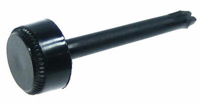 Insteek-as met vaste knop, totale lengte ( met knop): 46mm Knop: ca. doorsnede 15 x 8 mm Toepassing: voor montage in, instelpotmeters bijv. piher PT15 serie-open.