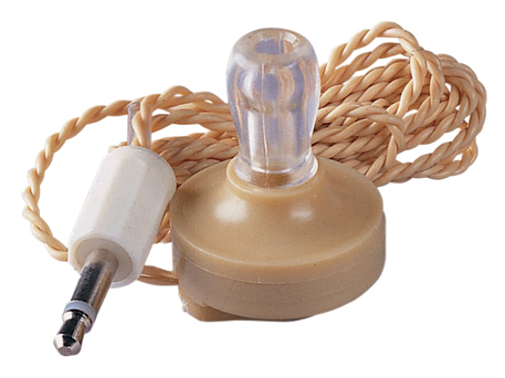 A discreetly coloured mono crystal earpiece with 3.5mm mono jack plug and matching lead.