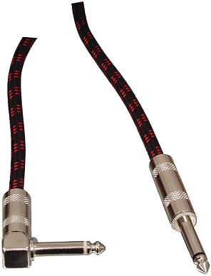 Woven instrument cable 6.35mm hooked-plug to 6.35mm straight-plug