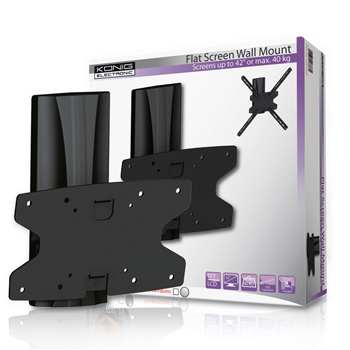 Universele muursteun voor LCD en Plasma TV’s tot 42” of maximaal 40 kg. Met deze beugel is de TV 20° kantelbaar en naar links en rechts draaibaar. De beugel is ontworpen om de TV zo dicht mogelijk tegen de muur te bevestigen, met nog genoeg lucht circulatie voor koeling. Compatibel met VESA 75/100/200/200x100/400/400x200 en NON VESA, inclusief montage materiaal.