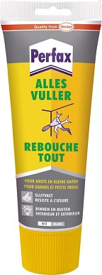 Perfax Allesvuller 330gr wordt toegepast om gaten, scheuren en oneffenheden duurzaam te vullen, egaliseren en repareren. Het kan worden toegepast op steen, gips, beton, hout, metaal en polyester. Het krimpt niet en is geschikt voor zowel binnen- als buitengebruik. Eenmaal droog wordt het gips zo hard als steen, maar het heeft een permanente zelfelasticiteit en kan worden geschilderd.