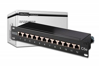 CAT5e 12 aansluitingen voor montage in 19 inch kast met 1H als hoogte.