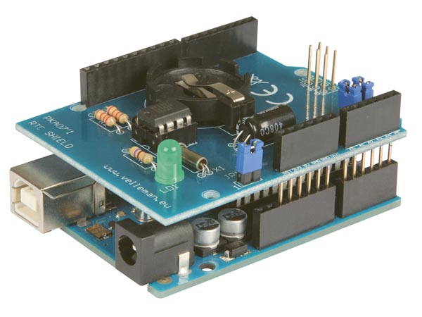 Voeg een realtimeklok toe aan uw projecten zodat de tijd op een precieze en gemakkelijke manier wordt bijgehouden. Terwijl het shield tijd en datum meet, kan de controller andere taken uitvoeren.