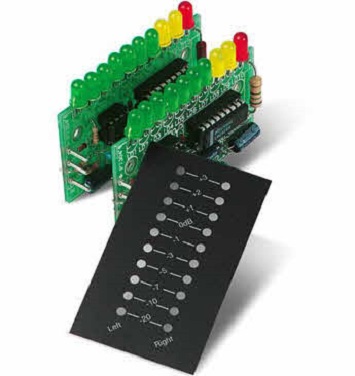 Stereo VU-meter met 2 x 10 LEDs (dot of bar display) met regelbare ingang. 1 frontpaneel voor verticale of horizontale montage inbegrepen.