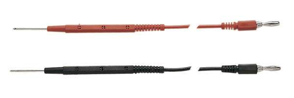 Testsnoerenset rood / zwart met aangegoten testpennen en 4mm stekker. Lengte 1,8meter.