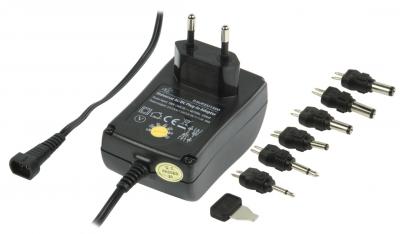 Zeer compacte en super efficiënte 600 mA plug-in adapter met 3-12 V output en LED indicator.