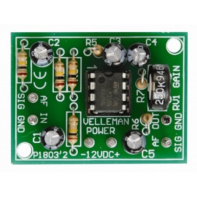 Deze kit werd ontworpen als audio tussenschakel voor allerlei toepassingen, waar het audiosignaal niet sterk genoeg is.