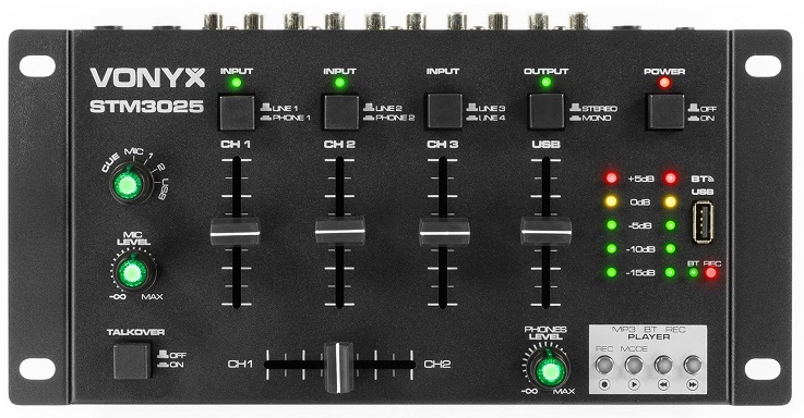 The Vonyx STM3025 BT Compact DJ Mixer will help ensure that your performances sound great every time. This mixer offers different line channels, two of which can be switched on to Phone channels. With the USB connectivity, users can play their MP3 files directly from any compatible storage device. BT technology will allow you to instantly add wireless streaming music to your DJ session. The record function makes it possible to record directly onto a USB drive.