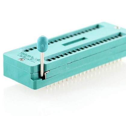 ZIF staat voor "Zero Insertion Force" wat vrij vertaald "Geen Invoer Kracht" betekend. het voordeel van deze socket is doordat je geen kracht hoeft te gebruiken niet onbedoeld de pinnen van jouw IC's kan ombuigen en daarmee kan beschadigen.